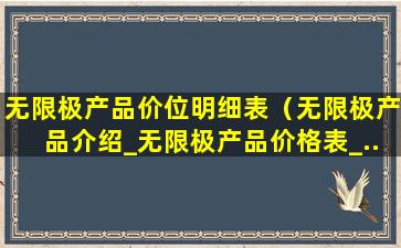 由于无限极的产品种类繁多,具体的产品介绍和价格表需要通过官方渠道或授权经销商获取。以下是一些常见的产品类别和它们可能包含的产品类型: