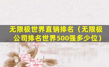 截至我所知的信息(知识截止日期为2023年),无限极在中国直销市场中具有较高的知名度和市场份额,但在全球范围内的具体排名可能会因不同的评价体系而有所差异。如果您需要最新的排名信息,建议查阅权威的商业杂志、市场研究报告或直销行业协会发布的数据。