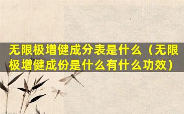 无限极增健是一款由无限极(Infinitus)公司生产的保健食品,其主要成分通常包括多种植物提取物、维生素、矿物质等,旨在帮助调节身体机能,增强免疫力。具体的成分表会因产品版本和配方的不同而有所差异。