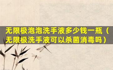 无限极(Infinitus)是一家中国的健康产品公司,其产品线涵盖了个人护理、健康食品等多个领域。关于无限极泡泡洗手液的价格,由于产品可能会有不同的规格、促销活动以及销售渠道的差异,价格会有所变动。