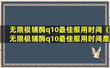 关于辅酶Q10的最佳服用时间,目前没有统一的科学共识,但有一些普遍的建议: