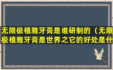 关于“无限极植雅牙膏是世界之它的好处是什么?”这个问题,首先需要澄清的是,并没有普遍认可的证据表明无限极植雅牙膏是“世界之最”。产品的效果和好处通常是基于个人体验和公司宣传,而不是基于全球范围内的科学共识或权威评价。