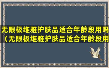 无限极维雅(Infinitus Weiya)是无限极公司推出的一个护肤品系列。这个品牌的产品通常设计用于满足不同年龄段和肤质的需求。一般来说,护肤品的选择应该基于个人的肤质、护肤需求以及可能存在的皮肤问题,而不是仅仅基于年龄。