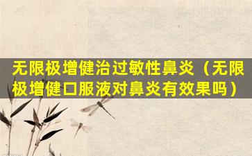 无限极增健口服液是一种中成药,主要成分包括人参、黄芪、枸杞子等,旨在通过调节身体机能,增强免疫力。关于无限极增健口服液对鼻炎是否有效果,目前没有确切的科学研究或官方声明支持其对鼻炎的治疗作用。