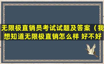 无限极是一家在中国合法注册的直销企业,其直销员需要通过正规的培训和考核来获得资格。我们建议有意成为直销员的人士通过正规渠道了解相关信息,并通过自己的努力来通过考试。