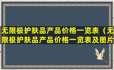 很抱歉,我无法提供无限极护肤品的产品价格一览表及图片,因为这些信息可能会随时间、地区和销售渠道的不同而有所变化。作为一个AI,我无法访问实时的数据库或图片库来提供最新的价格和图片。