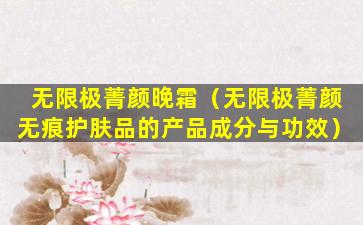由于产品信息可能会随时间更新,如果您想了解更多关于“无限极菁颜晚霜”的具体信息,如成分、功效、使用方法和用户评价等,建议直接访问无限极的官方网站或联系其客服获取最新的产品信息。同时,购买和使用任何护肤产品前,了解自己的肤质和产品成分是否适合自己的肌肤是非常重要的。