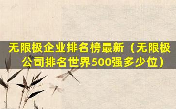 关于无限极在企业排名榜上的最新情况,由于排名会随着时间、评价标准和数据来源的不同而有所变化,因此需要查阅最新的商业报告、行业分析或权威机构发布的排名。例如,可以参考《财富》杂志、《福布斯》杂志、Interbrand的品牌价值排行榜、中国企业联合会发布的中国企业500强等。