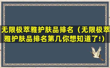 截至我的知识更新日期(2023年),无限极(Infinitus)是一家中国的健康产品公司,其产品线包括中草药保健品、个人护理产品等。萃雅(CureCare)可能是无限极旗下的一个护肤品牌或系列。关于“无限极萃雅护肤品排名”的具体信息,由于缺乏官方或权威的排名数据,我无法提供一个确切的排名列表。