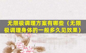 无限极是一家中国的保健品公司,提供多种健康产品,包括营养补充品、个人护理产品等。关于使用无限极产品调理身体多久能见效果,这个问题的答案因人而异,取决于多种因素: