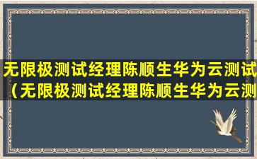 您提到的“无限极测试经理陈顺生华为云测试广州社区”似乎是一个特定的人物和事件的组合,但由于信息不完整,很难提供具体的背景或详细信息。不过,我可以尝试根据您提供的关键词进行一些解释和推测。