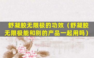 无限极是中国的一个保健品品牌,其产品线涵盖了健康食品、个人护理品等多个领域。关于“舒凝胶”这一产品,由于信息不足,无法提供具体的功效描述。如果您是指无限极的某款具体产品,建议您查阅该产品的官方说明书或官方网站上的信息,以获取准确的产品功效和使用说明。