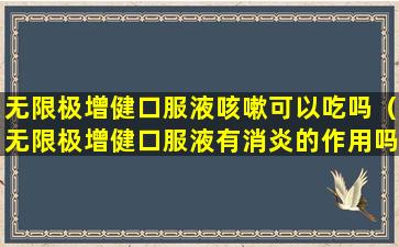 无限极增健口服液作为一种保健品,其对咳嗽的治疗效果并不明确,因此在咳嗽时是否使用应谨慎,并在专业医疗人员的指导下进行。