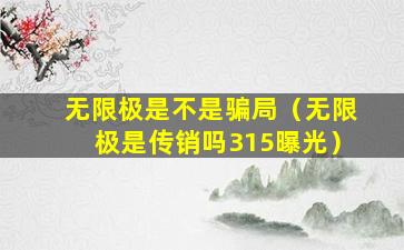如果您提到的“无限极是传销吗315曝光”是指无限极在某个3·15晚会上被曝光涉嫌传销,那么这可能意味着该公司在某个时间段内被指控或怀疑从事非法传销活动。但是,具体情况需要根据当时的官方报道和调查结果来判断。