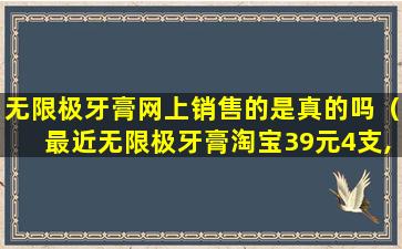 关于商品价格,尤其是像无限极这样的品牌产品,如果价格远低于市场价,消费者应该保持警惕。在淘宝或其他电商平台上,确实可能会有一些商家提供特价或促销活动,但39元4支无限极牙膏的价格如果远低于正常零售价,那么可能存在以下几种情况: