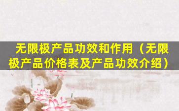 无限极(Infinitus)是一家中国的健康产品公司,隶属于李锦记健康产品集团。无限极提供多种健康食品、个人护理产品以及家居护理产品。以下是一些无限极产品的价格表及产品功效介绍,但请注意,价格可能会因地区、促销活动和购买渠道的不同而有所变化。