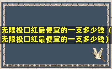 通常,无限极的产品价格会根据产品的种类、规格、销售渠道等因素有所不同。如果您想了解无限极口红最便宜的一支的价格,建议您直接访问无限极的官方网站或者联系其客服,或者前往授权的零售店进行咨询。