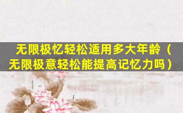 无限极(Infinitus)是一家中国的健康产品公司,它生产和销售各种保健品、个人护理产品和家居用品。关于“无限极意轻松”是否能提高记忆力,这需要基于科学研究和产品成分来评估。