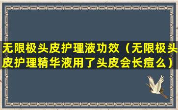 无限极头皮护理精华液是无限极公司生产的一款头皮护理产品,其主要功能是帮助改善头皮环境,减少头皮屑,平衡油脂分泌,以及提供营养等。关于使用该产品后头皮是否会长痘,这可能因人而异。