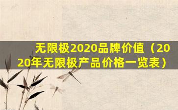 由于我无法访问最新的数据和报告,无法提供无限极2020年的具体品牌价值。如果您需要这方面的信息,建议查阅相关的品牌价值评估报告或联系无限极公司获取官方数据。同时,您也可以关注权威的品牌价值排行榜,如Interbrand、Brand Finance等发布的年度品牌价值报告,这些报告通常会包含全球及特定地区的品牌价值排名。