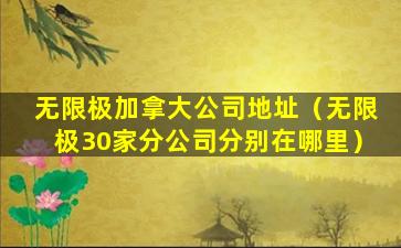 截至我所知的信息,无限极加拿大公司的地址可能位于加拿大的主要城市之一,例如多伦多或温哥华。具体的地址信息可能会随时间而变化,因此最准确的方式是直接访问无限极的官方网站或联系他们的客户服务部门以获取最新的联系信息。