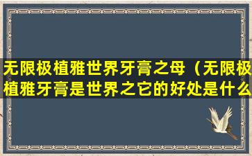 关于“无限极植雅牙膏是世界之它的好处是什么?”这个问题,由于“世界之”这个表述并不明确,我无法提供具体的答案。但是,一般来说,牙膏产品的好处可能包括: