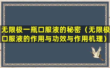 无限极是一家中国的保健品公司,其产品包括口服液、胶囊、片剂等多种形式。关于“无限极一瓶口服液的秘密”,这可能是一个营销宣传语,旨在吸引消费者对产品的关注。作为消费者,在选择任何保健品时,应当基于科学的态度和理性的判断。