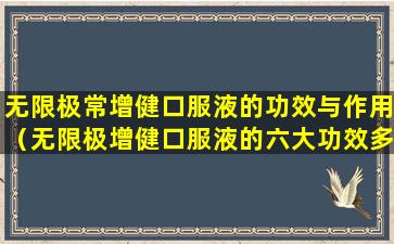 无限极增健口服液是无限极公司生产的一款保健品,它主要含有多种植物提取物,据称可以帮助调节身体机能,增强免疫力。关于其功效,通常会提到以下几点: