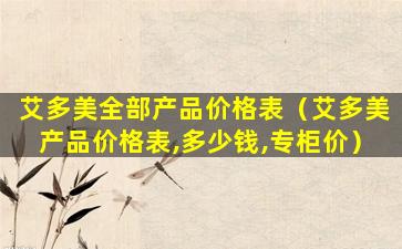 很抱歉,我无法提供“艾多美”全部产品的价格表,因为这需要实时的市场数据和具体的产品信息,而这些信息通常由公司直接提供或者通过官方渠道发布。艾多美(Aveda)是一个以植物为基础的美容品牌,提供护肤、护发、身体护理等产品。