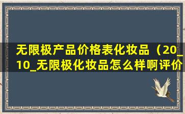 关于“20_10_无限极化妆品怎么样啊评价”,由于没有具体的化妆品产品名称,我无法提供针对特定产品的评价。不过,一般来说,对于无限极化妆品的评价可能会有以下几个方面: