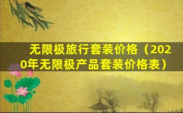 关于“2020年无限极产品套装价格表”,由于我无法访问最新的数据和价格信息,我无法提供具体的价格表。无限极是一家知名的健康产品公司,其产品包括营养保健品、个人护理品等。如果您需要了解无限极产品的价格信息,建议直接访问无限极的官方网站或联系其客服获取最新的产品价格和套装详情。