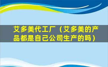 如果你有更多的信息或者是在寻找特定的"艾多美代工厂",请提供更多的上下文,以便能够给出更准确的答案。