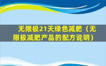 1. 产品信息:我们需要了解“无限极”是一家中国的直销公司,主要销售健康食品、个人护理品等产品。如果提到“21天绿色减肥”,可能是指该公司推出的一种减肥产品或计划。
