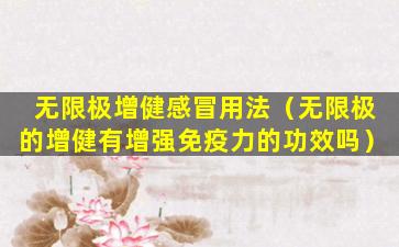 无限极是中国的一家保健品公司,其产品包括多种健康食品和营养补充品。关于“无限极增健感冒用法”,这可能是指使用无限极的某种产品来辅助缓解感冒症状或增强免疫力。