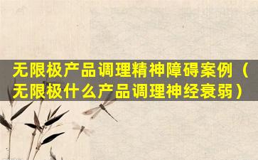 关于“无限极产品调理精神障碍案例”的说法,首先需要明确的是,任何关于健康和医疗的建议都应该由专业的医疗人员提供。精神障碍是一种复杂的医疗状况,需要专业的诊断和治疗。