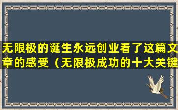 关于“无限极成功的十大关键”,我无法提供具体的信息,因为这可能涉及到特定公司的内部策略或营销信息,而这些信息通常是受版权保护的。如果您是在寻找一般性的成功关键因素,我可以提供一些普遍适用的建议: