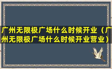 截至我的知识更新日期(2023年),我无法提供广州无限极广场确切的开业时间。如果您想了解最新的开业信息,建议您关注无限极广场的官方网站、社交媒体账号或当地新闻媒体的报道,以获取最准确和最新的信息。