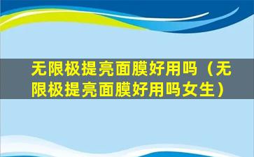 无限极(Infinitus)是一家中国的健康产品公司,提供多种保健食品、个人护理产品等。关于无限极的提亮面膜是否好用,这通常取决于个人的肤质、使用习惯以及对产品的个人体验。