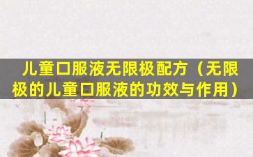 无限极是一家中国的保健品公司,其产品包括多种口服液,其中可能包括针对儿童的口服液。儿童口服液通常设计用于补充儿童成长所需的营养素,增强免疫力,促进消化吸收等。具体产品的功效与作用需要根据其成分和配方来确定。