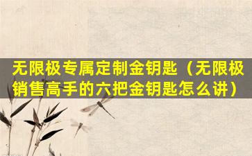 如果您是无限极的销售代表或客户,并且对“无限极专属定制金钥匙”感兴趣,建议您联系无限极的官方客服或查看其官方网站、社交媒体平台上的最新公告,以获取最准确和官方的信息。请注意,任何涉及金钱或个人信息的活动都应谨慎对待,确保来源的合法性和安全性。