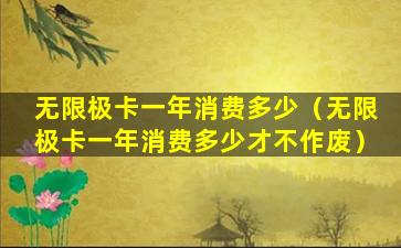 无限极卡(Infinity Card)并不是一个广为人知的信用卡产品,因此我无法提供确切的年消费金额。如果您是指某种特定的信用卡或会员卡,并且该卡提供了无限积分或奖励的福利,那么年消费金额将取决于持卡人的消费习惯和能力。