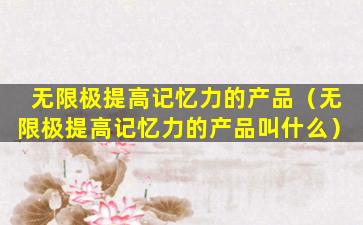 无限极(Infinitus)是一家中国的健康产品公司,隶属于李锦记健康产品集团。该公司生产和销售多种健康食品、个人护理产品和中草药产品。关于“提高记忆力的产品”,无限极可能提供一些声称有助于改善大脑功能和记忆力的产品,但具体产品的有效性和安全性需要根据科学研究和监管机构的评估来确定。