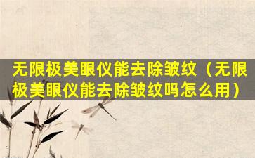 无限极美眼仪是无限极公司推出的一款美容仪器,它通常被设计用来帮助改善眼部肌肤的问题,比如细纹、黑眼圈和眼袋等。关于它是否能去除皱纹,这取决于多种因素,包括皱纹的类型、深度以及个人的肤质和使用习惯等。