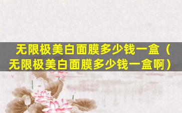 无限极(Infinitus)是一家中国的健康产品公司,它提供多种健康食品、个人护理产品等。关于无限极的美白面膜,由于产品线可能会有更新,价格也可能随市场变化而变化,因此我无法提供一个确切的价格。