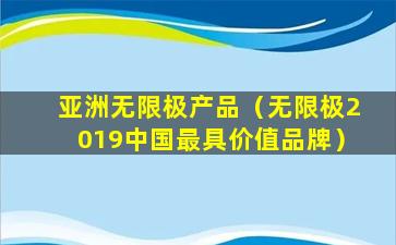截至我所知的信息,无限极是一家中国的健康产品公司,主要从事中草药健康产品的研发、生产和销售。关于“无限极2019中国最具价值品牌”这一说法,我无法提供确切的信息,因为这可能是一个特定机构或媒体根据其评估标准发布的排名。