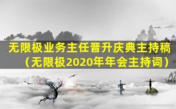 在这辞旧迎新的美好时刻,我们齐聚一堂,共同庆祝无限极2020年的辉煌成就。我是今晚的主持人[主持人姓名],非常荣幸能与大家一起分享这份喜悦和荣耀。