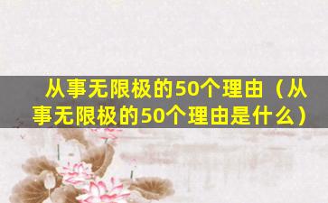 无限极是一家中国的直销公司,主要从事健康产品的销售。关于“从事无限极的50个理由”,这通常是公司或其销售代表为了吸引人们加入其销售网络而提出的宣传点。这些理由可能包括但不限于以下几点: