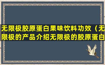 无限极(Infinitus)是一家中国的保健品公司,其产品线涵盖了多种健康食品和营养补充品。胶原蛋白饮品是其中的一种产品,主要宣传的功效是帮助改善皮肤弹性、减少皱纹、促进关节健康等。