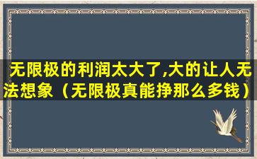 无限极是一家中国的直销公司,主要销售健康食品、个人护理品和家居用品等。关于“无限极真能挣那么多钱”的问题,需要从几个方面来理解: