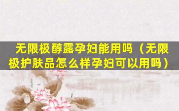无限极醇露是一种护肤品,通常用于滋润和保护皮肤。孕妇在使用任何护肤品时都应该格外小心,因为某些成分可能会对胎儿造成风险。